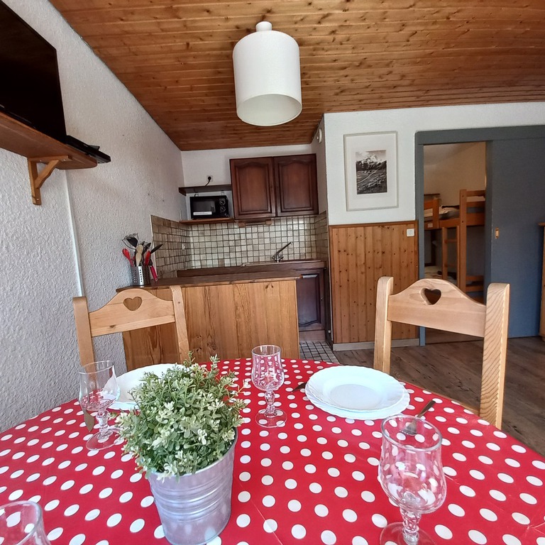 Les Alberges apartment (30m2) is located just 350m to 2 main lifts; the Belle Etoile telemix that takes you to 2200m, or Jandri Express which goes to 2600m and the snowpark, and onto the