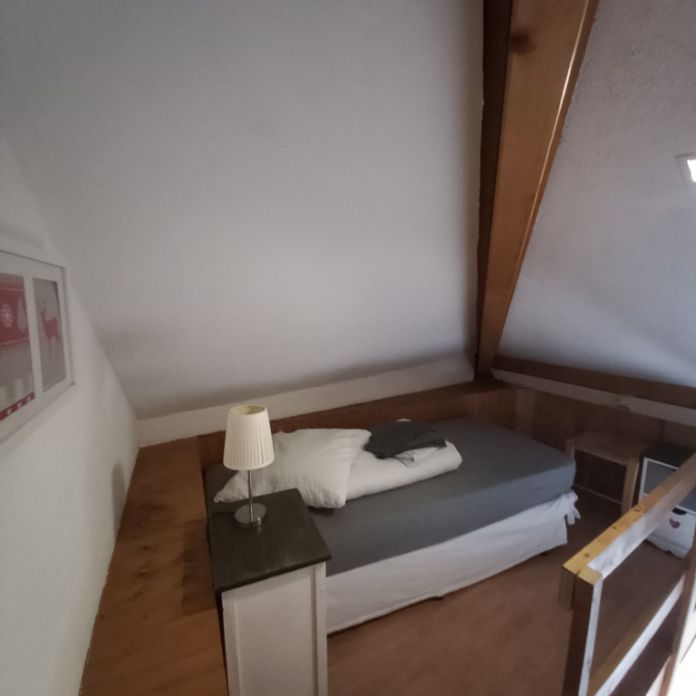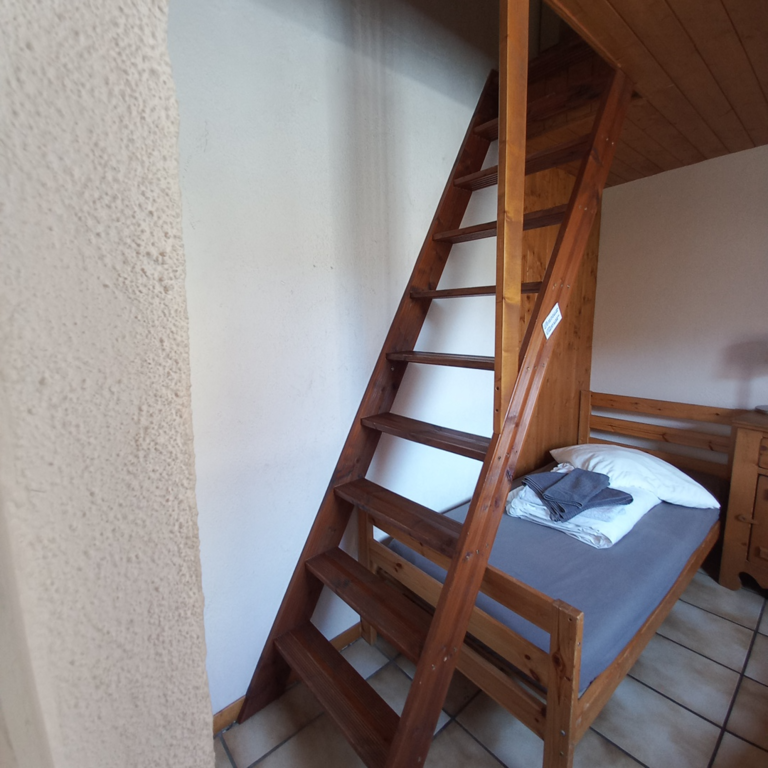 Une chambre indépendante qui dispose de 2 lits simple (80x190). Un lit simple (80x190) au dessus - pas de fenêtre, plafond bas, hauteur limitée.