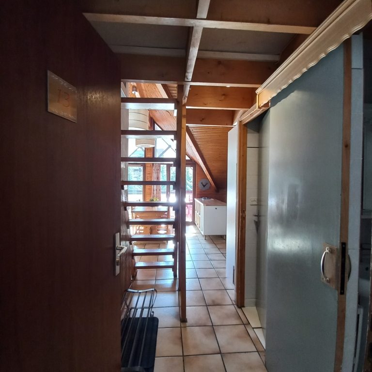 Pas de casier à skis, espace sur le balcon pour l'équipement.